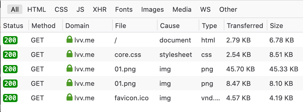 首页加载只需要一个 CSS 样式文件,总的加载资源只有 4KB 大小。