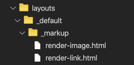 要使用钩子需要添加两个模版文件,路径是 layouts/_default/_markup/,可以放在你的博客目录也可以内置在主题里。