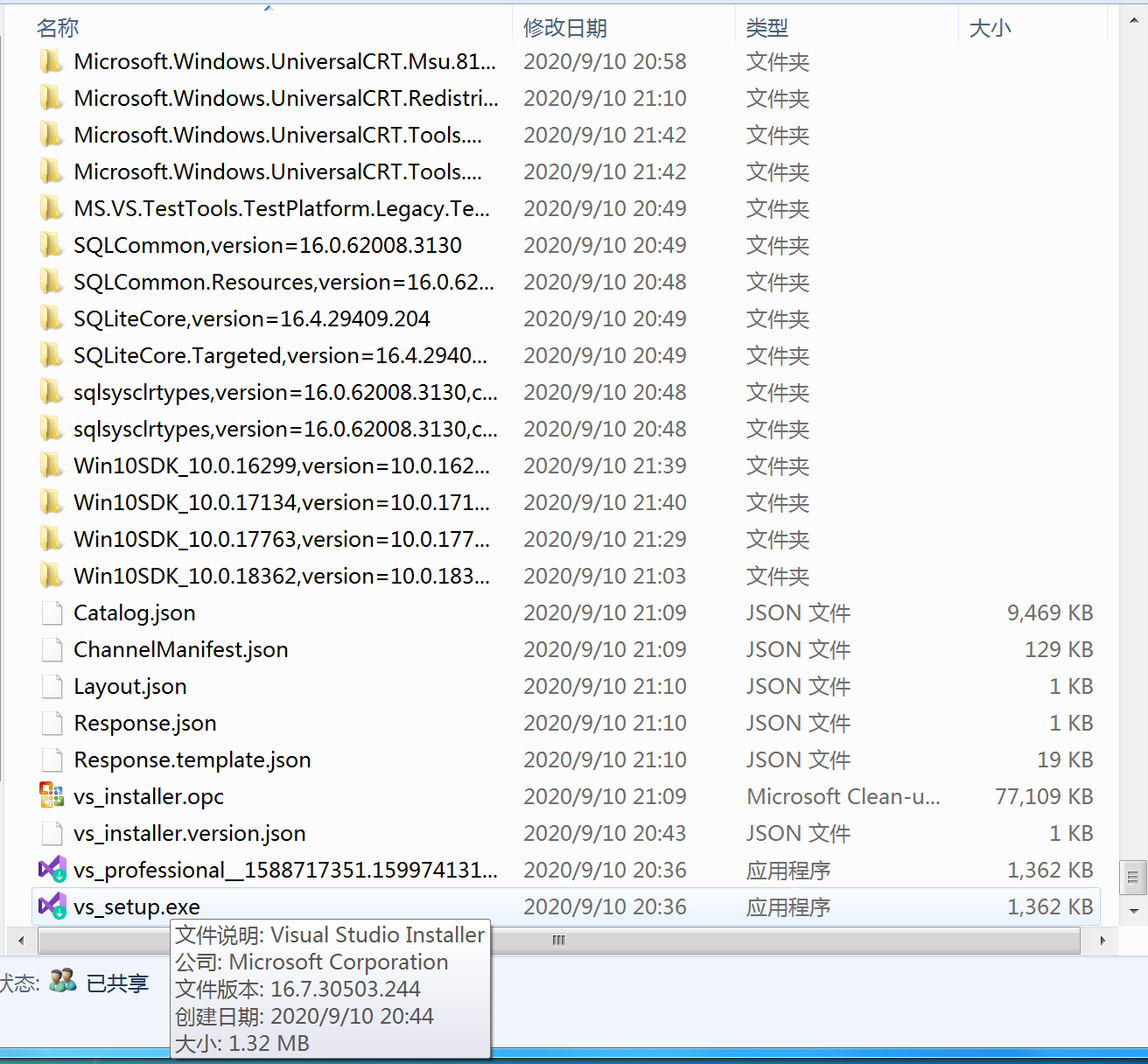 大约 6.42GB,直接运行 vs_setup.exe 就可以离线安装