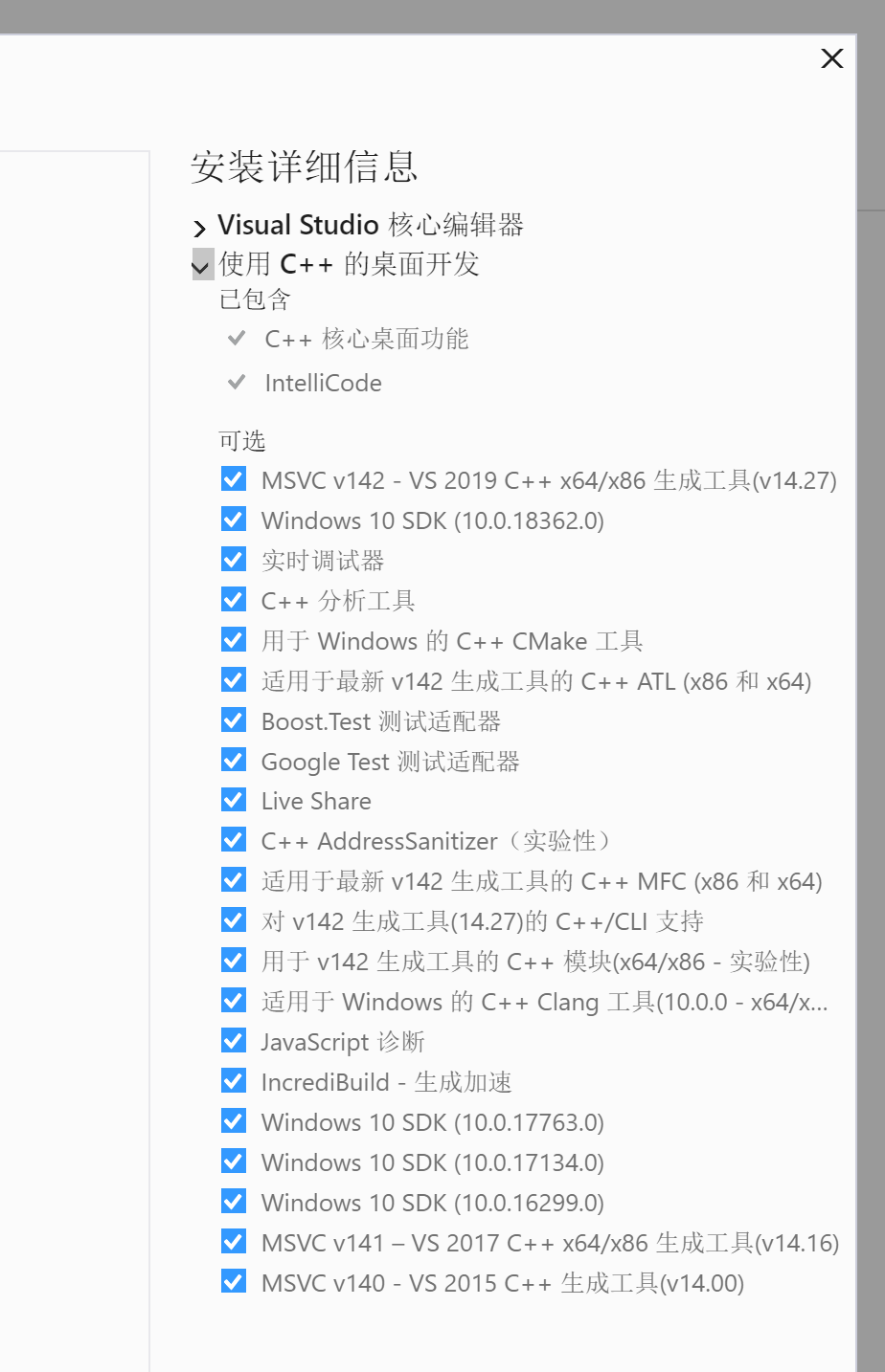 如果你只需要 C++ 的推荐组件和可选组件,语言是简体中文: