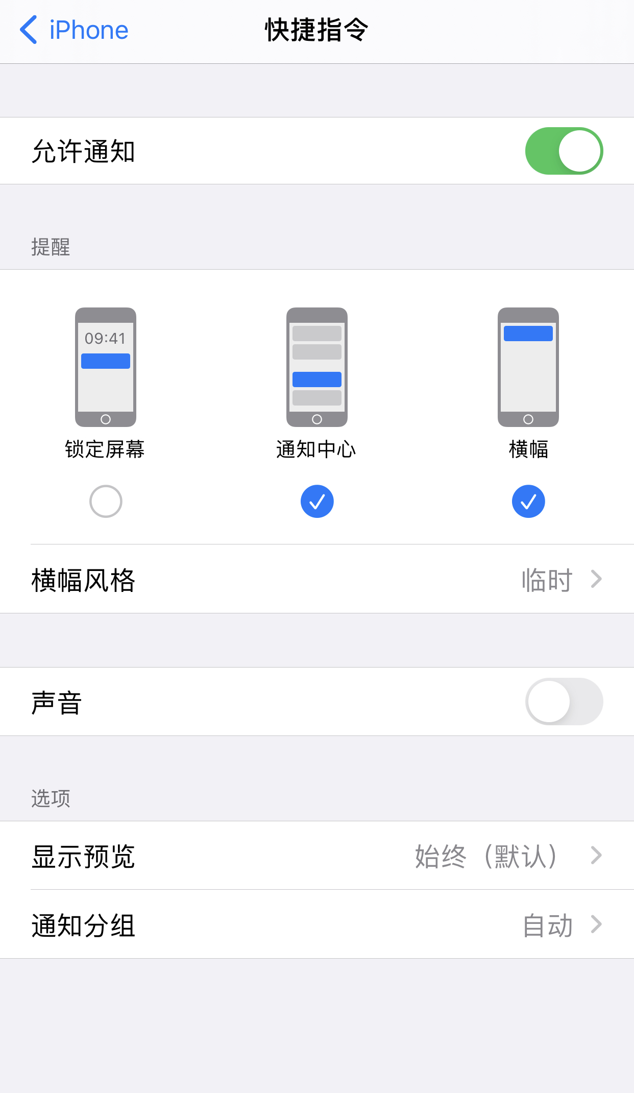 滑动到最下面的“通知”分类,找到“快捷指令”,点击进入通知设置页面