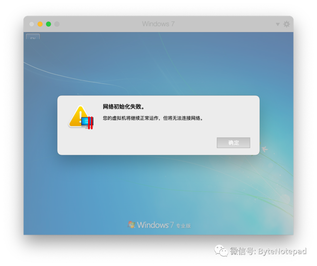 在系统更新到 Big Sur 以后,Parallels Desktop 启动任何虚拟机都会提示“网络初始化失败”,进入虚拟机后无法联网。