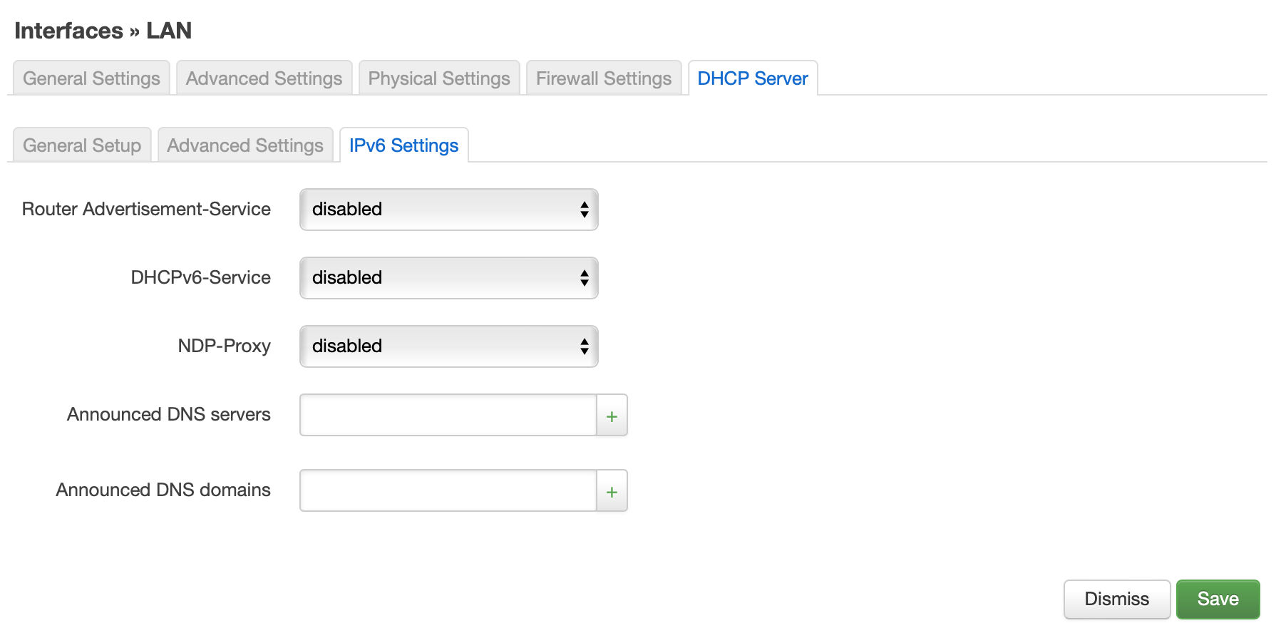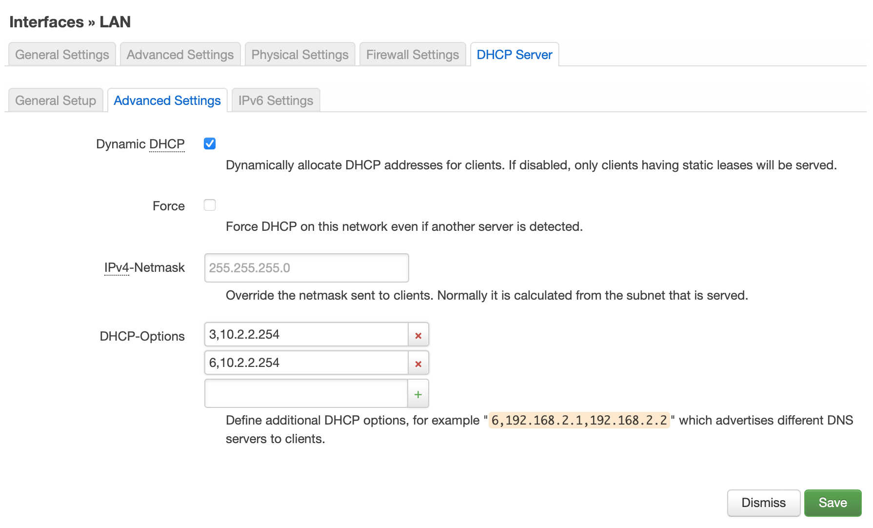 Interfaces » LAN » DHCP Server » Advanced Settings » DHCP-Options